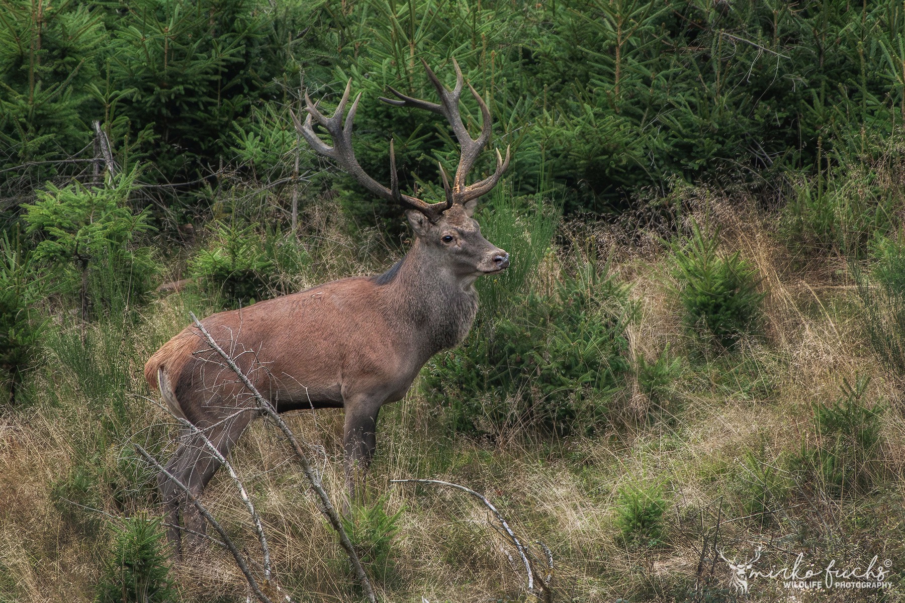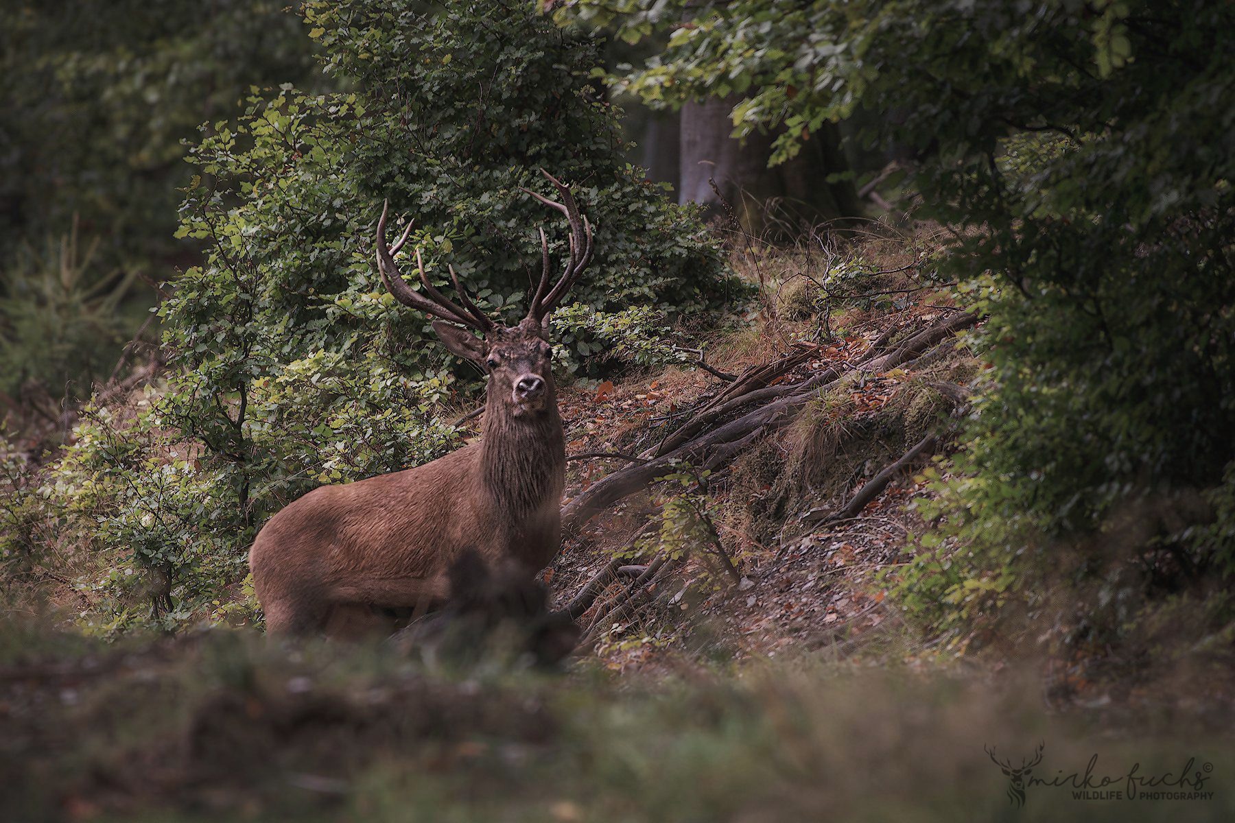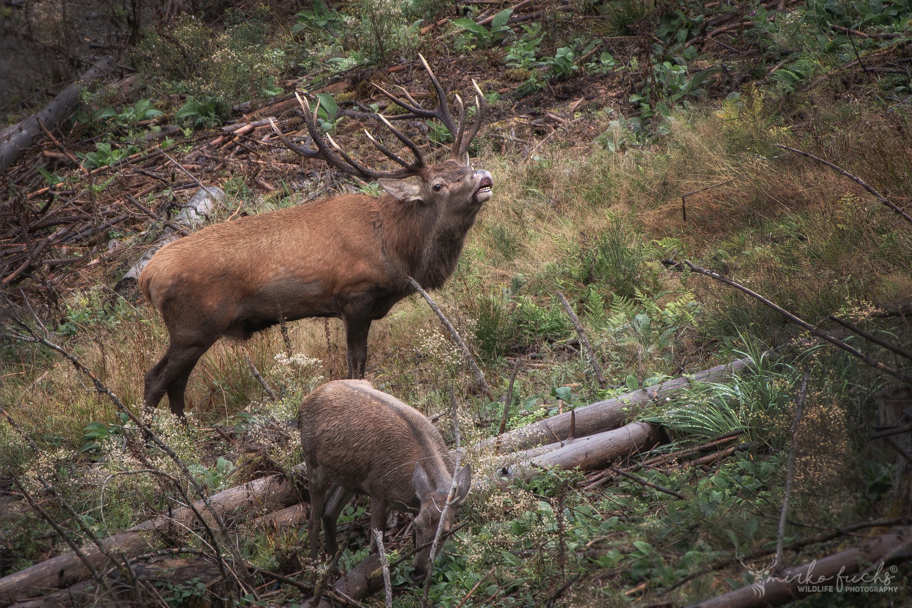 Wir haben das große Glück, in einem Revier fotografieren zu dürfen, in dem während der Brunft so gut wie nicht geschossen wird. Der Pächter geht dort sehr verantwortungsvoll mit dem Wild um und gibt den Hirschen die Ruhe, die sie in dieser Zeit brauchen. Genau so sieht gelebter Respekt vor der Natur aus.