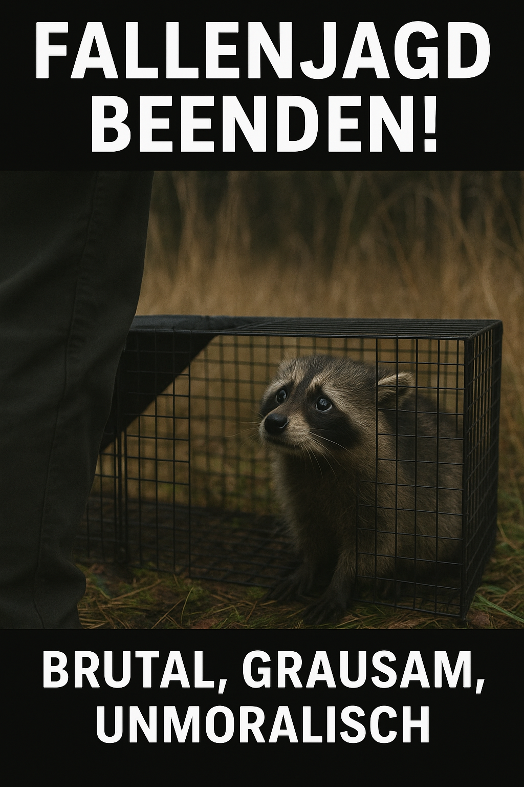 Wer glaubt, Fallen seien ein „humanes“ Instrument der Jagd, sollte genauer hinsehen. Ein Tier im Käfig einzusperren, ihm jede Möglichkeit zur Flucht zu nehmen und es dann durch Kopfschuss oder Schrotsalve zu „erlösen“, hat nichts mit Respekt gegenüber Wildtieren zu tun. Es ist eine Inszenierung der Kontrolle, eine Machtdemonstration des Menschen über ein Lebewesen, das weder eine Chance hat noch eine Wahl.